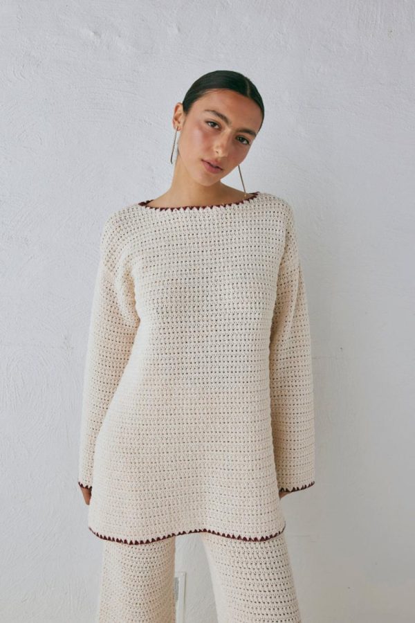 - Contrast hand-stitched neckline, sleeves & hem