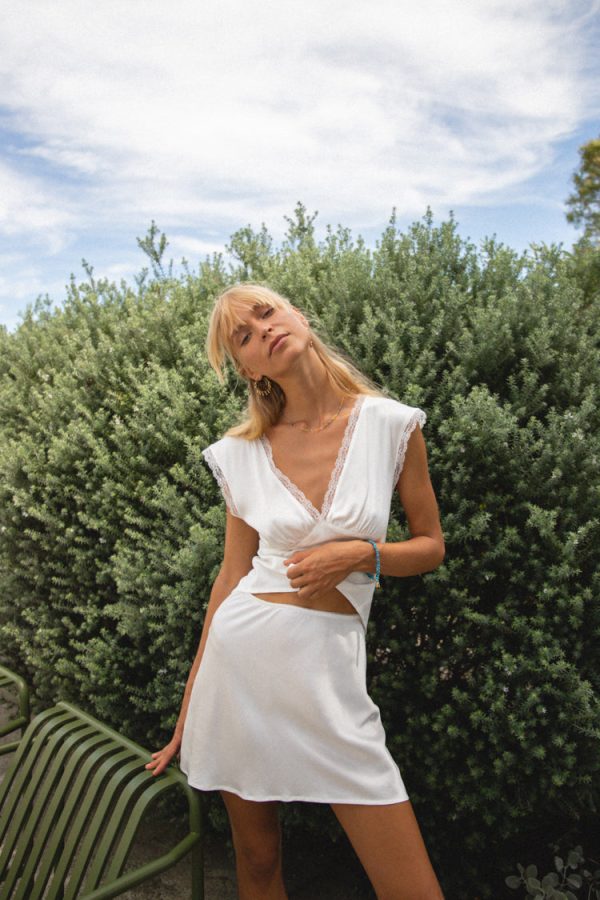 VRG GRL Sets | Vintage Lover Bias Cut Mini Skirt White Women