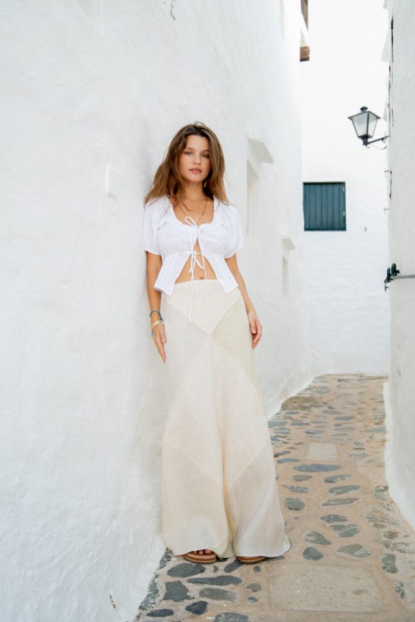 VRG GRL Skirts | Valencia Bias Cut Linen Maxi Skirt Cream Women